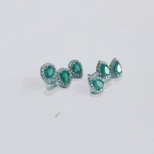Add a regal touch to your festive ensemble with the Green Radiance Teardrop Studs. Featuring faceted green gemstones encircled by shimmering halos, these earrings are crafted in a silver-toned setting that enhances their brilliance. Perfect for weddings, celebrations, or elegant gifting.