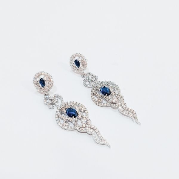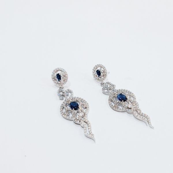 Step into timeless elegance with the Royal Sapphire Drop Silver Earrings, featuring deep blue gemstones framed by intricate silver filigree and shimmering halos. Perfect for weddings, festive occasions, or statement gifting, these earrings blend regal charm with handcrafted artistry.