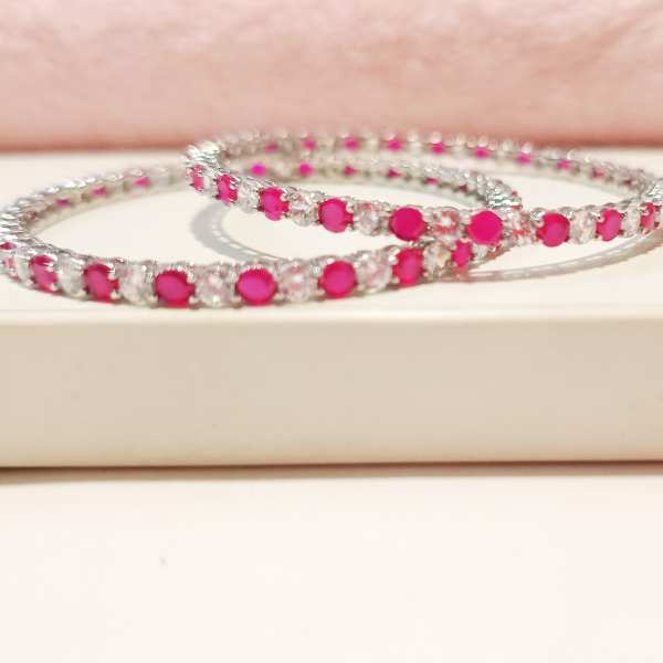 Sterling silver bangles With Pink Stone