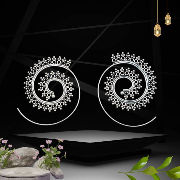 Make a graceful statement with the Chakra Bloom Sterling Silver Spiral Hoop Earrings. Crafted in pure 925 sterling silver, these earrings feature a beautifully detailed spiral design accented with delicate silver bead work, inspired by traditional chakra and floral motifs. Perfect for ethnic wear, festive occasions, and contemporary styling.