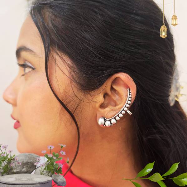 Handcrafted 925 sterling silver cuff bracelet adorned with elegant silver bead detailing in a pearl-inspired design. Minimal, stylish, and perfect for everyday or festive wear.
