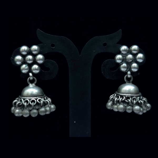 Stylish 925 sterling silver oxidised mini jhumki with a ball-flower stud and a dome drop finished with ghungroo bead hangings—perfect for daily and ethnic looks.
